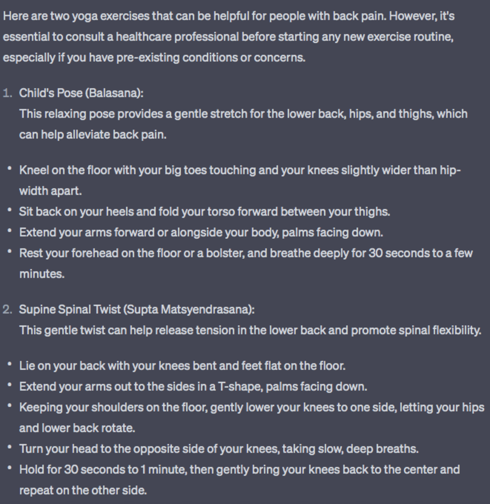 As an example, I asked ChatGPT below to provide a list of various ways to stretch: