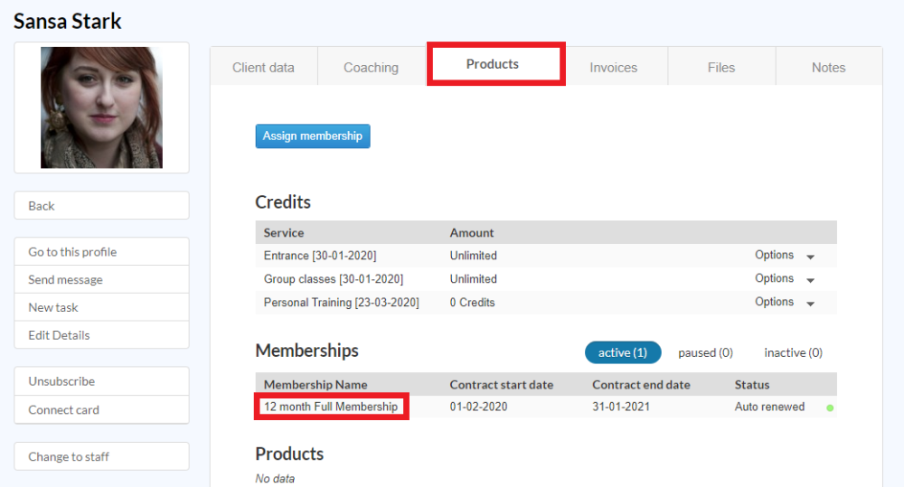2# Klicke nun auf der Kundenprofilseite auf die Registerkarte “Produkte”.