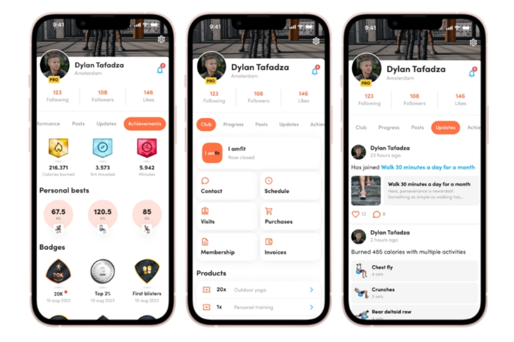 Los perfiles en Virtuagym son ahora aún mejores. No más búsquedas: todo lo que necesitas está en un solo lugar en la aplicación, desde la información del club, y el progreso hasta las actualizaciones y actividades.