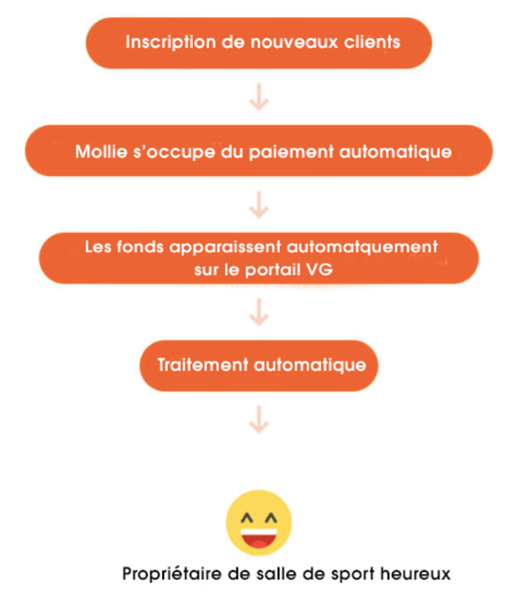 De nombreux clients de Virtuagym ont déjà choisi de se simplifier un peu la vie en utilisant la facturation automatisée. Vous pouvez voir ci-dessous un exemple de la facilité du processus de paiement avec Mollie, l’un des fournisseurs de paiement les plus populaires en Europe.
