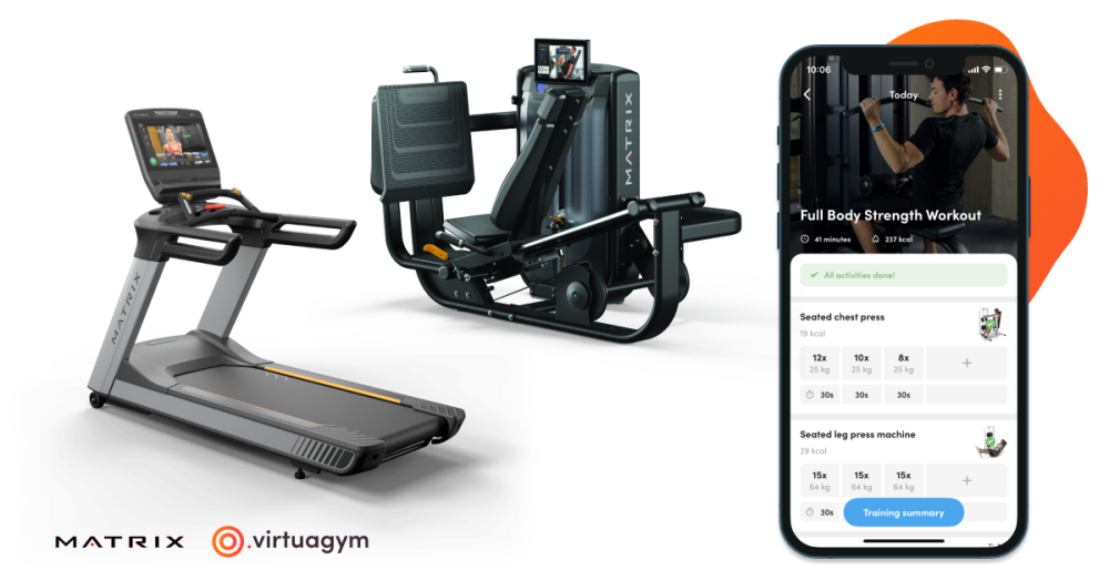 Met de Matrix-integratie wordt de trainingsdata van jouw leden voor zowel kracht- als cardio-oefeningen automatisch gesynchroniseerd en gelogd in de Virtuagym-app en het coachingsplatform.